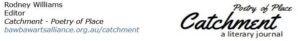 Thanks yet again for your support of Catchment – Poetry of Place: it is greatly appreciated.